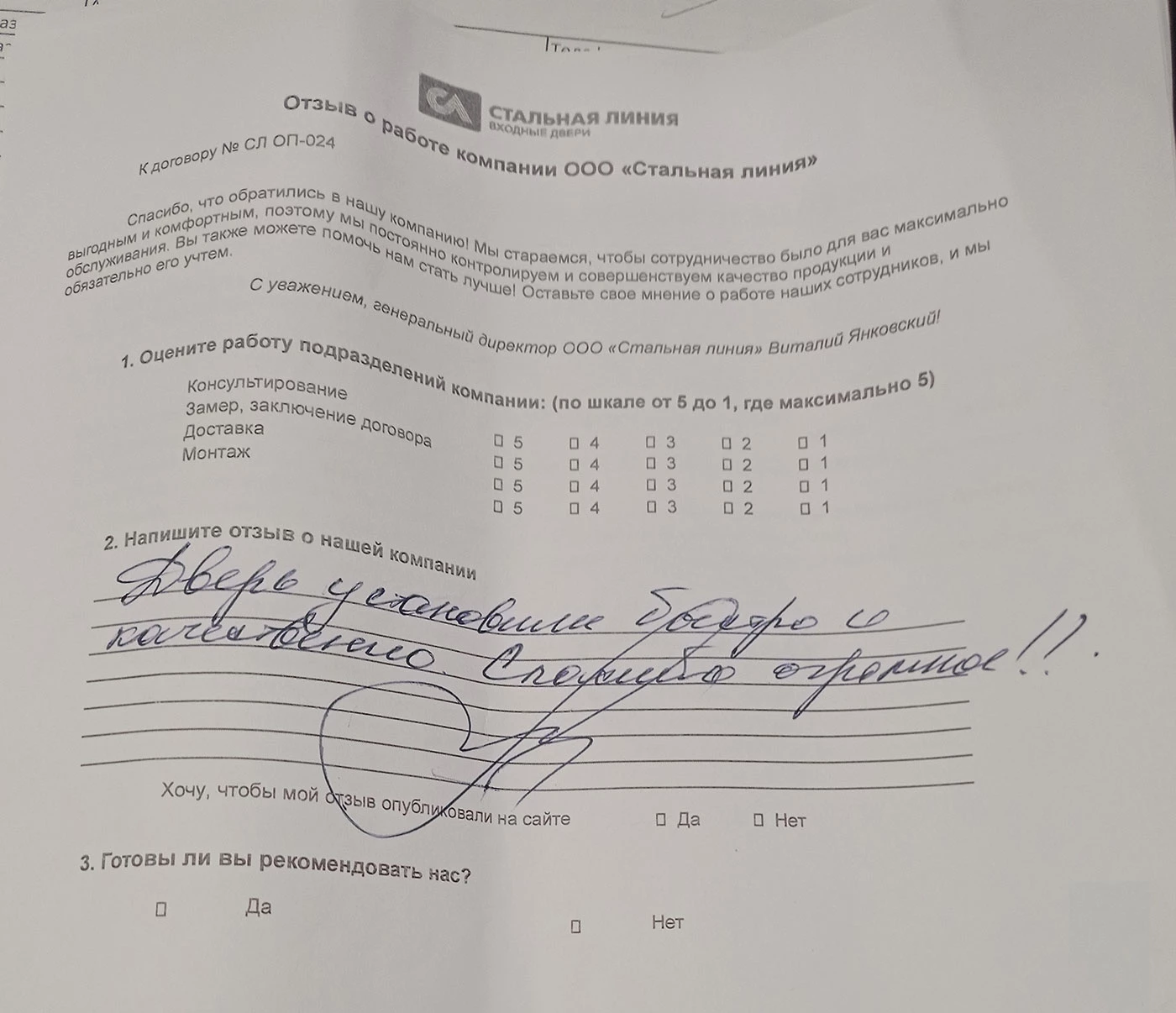 Дверь установили быстро и качественно. Спасибо огромное!!