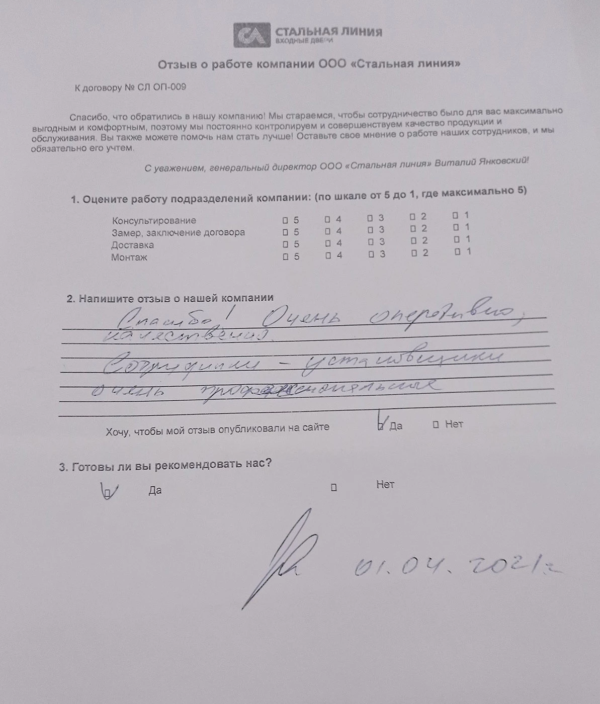 Спасибо! Очень оперативно, качественно. Сотрудники-установщики очень профессиональные.
