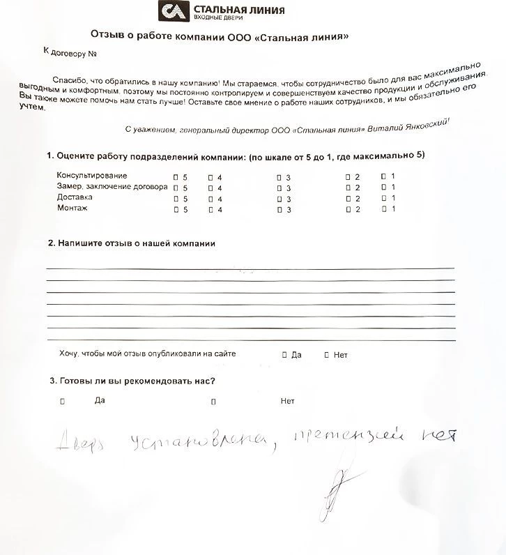 Дверь установлена, претензий нет
