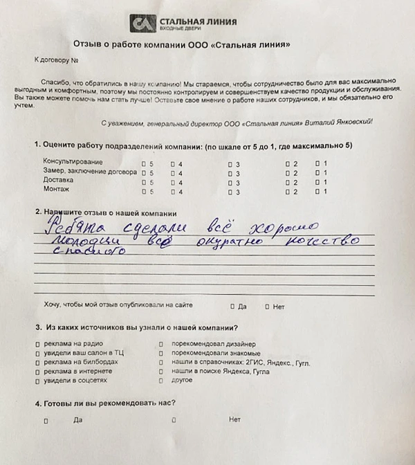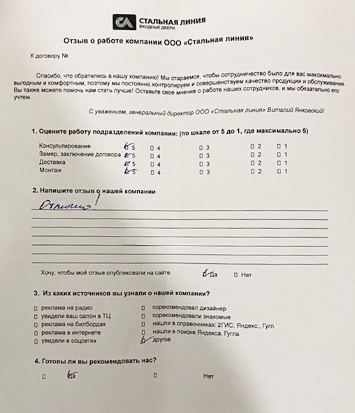 Приобретали у нас дверь? Вам всё понравилось? Оставьте отзыв!